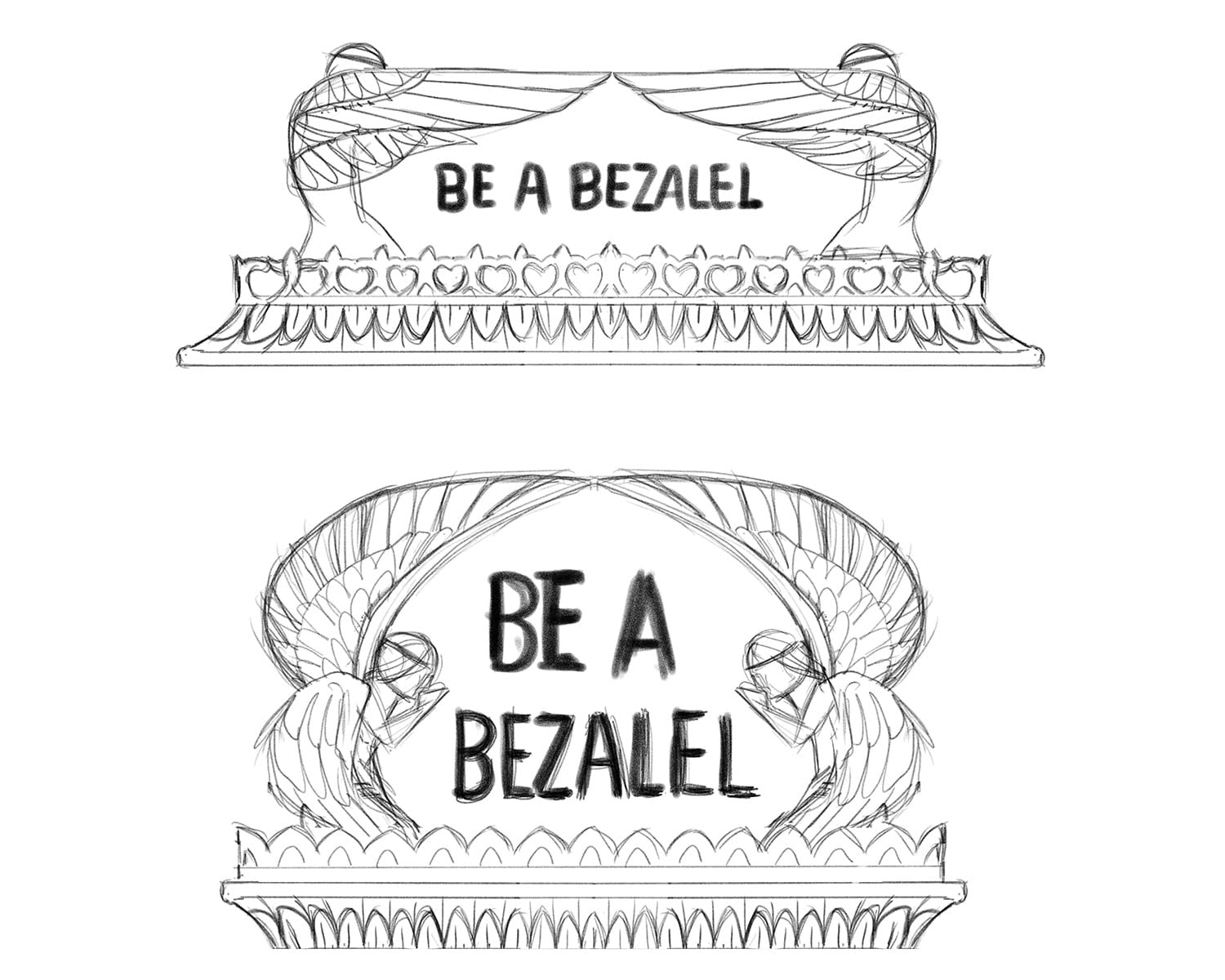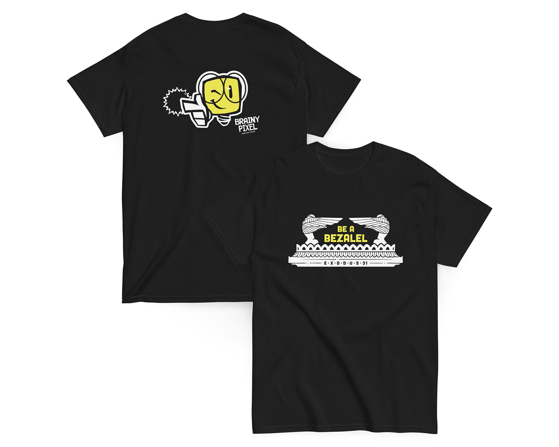 Once approved, I worked both options up as full, two-color vector artwork, using the Brainy Pixel brand color yellow and white and presented both to the creative director. I also chose two typeface options for the 'Be A Bezalel' slogan that complemented the illustration.