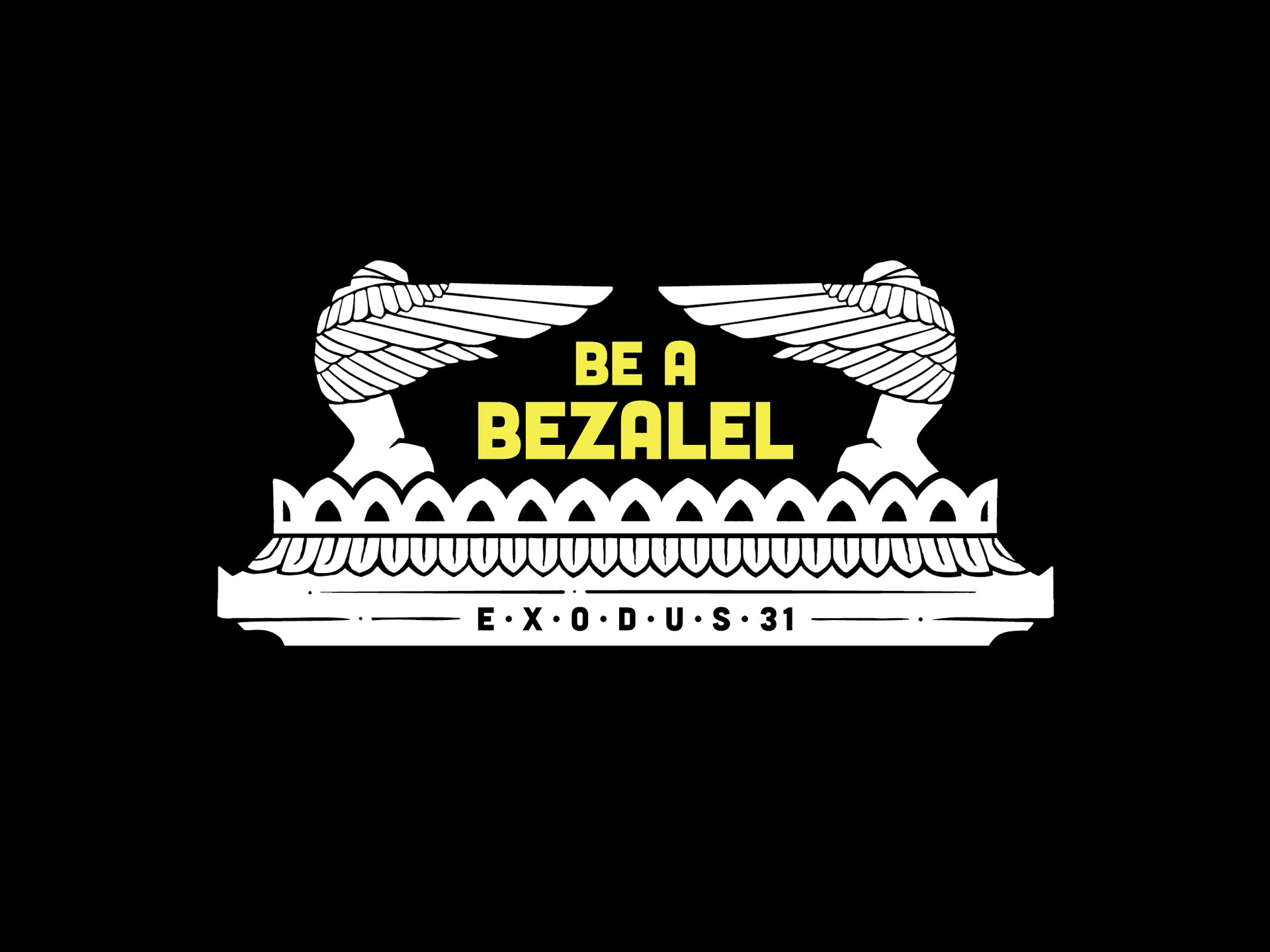 The illustration features the two cherubim with wings outstretched atop the lid of the ark of the covenant, with the slogan 'Be a Bezalel' and the Scripture reference of Exodus 31 on the lid. Chapter 31 of Exodus references the craftsmen chosen by God from among the Israelites (one of which was Bezalel) to create artistic designs in gold, silver, and bronze, as well as cut stones, and woodwork, for the dedication of the tabernacle. The reminder is for each creative at Brainy Pixel to do their best quality work for each project and client, striving to glorify the Lord in their work.
