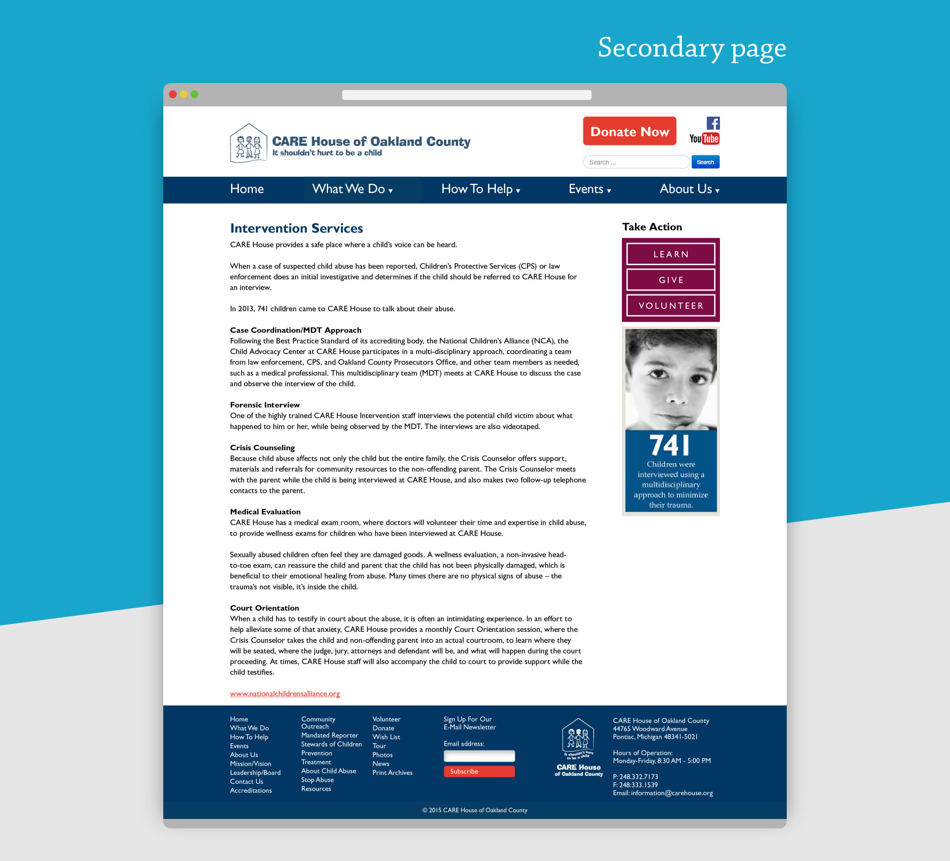 In 2015, one of our longtime clients, CARE House of Oakland County, wanted to update the look and layout of their website to be more current as well as responsive across various device views. We had built their previous website, so the challenge was updating the site with existing content and adapting it to a new template and responsive grid. They also wanted to be able to handle some of the content management of the site themselves once it was finished.