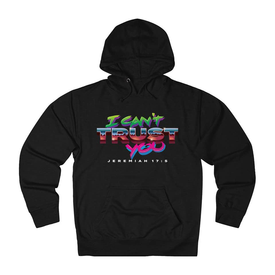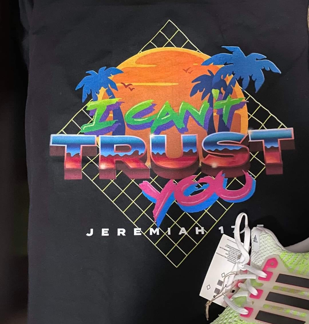 A friend's startup apparel company, “I Can’t Trust You”, whose name is provocative on the face, but is a summary of Jeremiah 17:5—“Thus says the Lord, cursed is the man who trusts in mankind, And makes flesh his strength, And whose heart turns away from the Lord.”